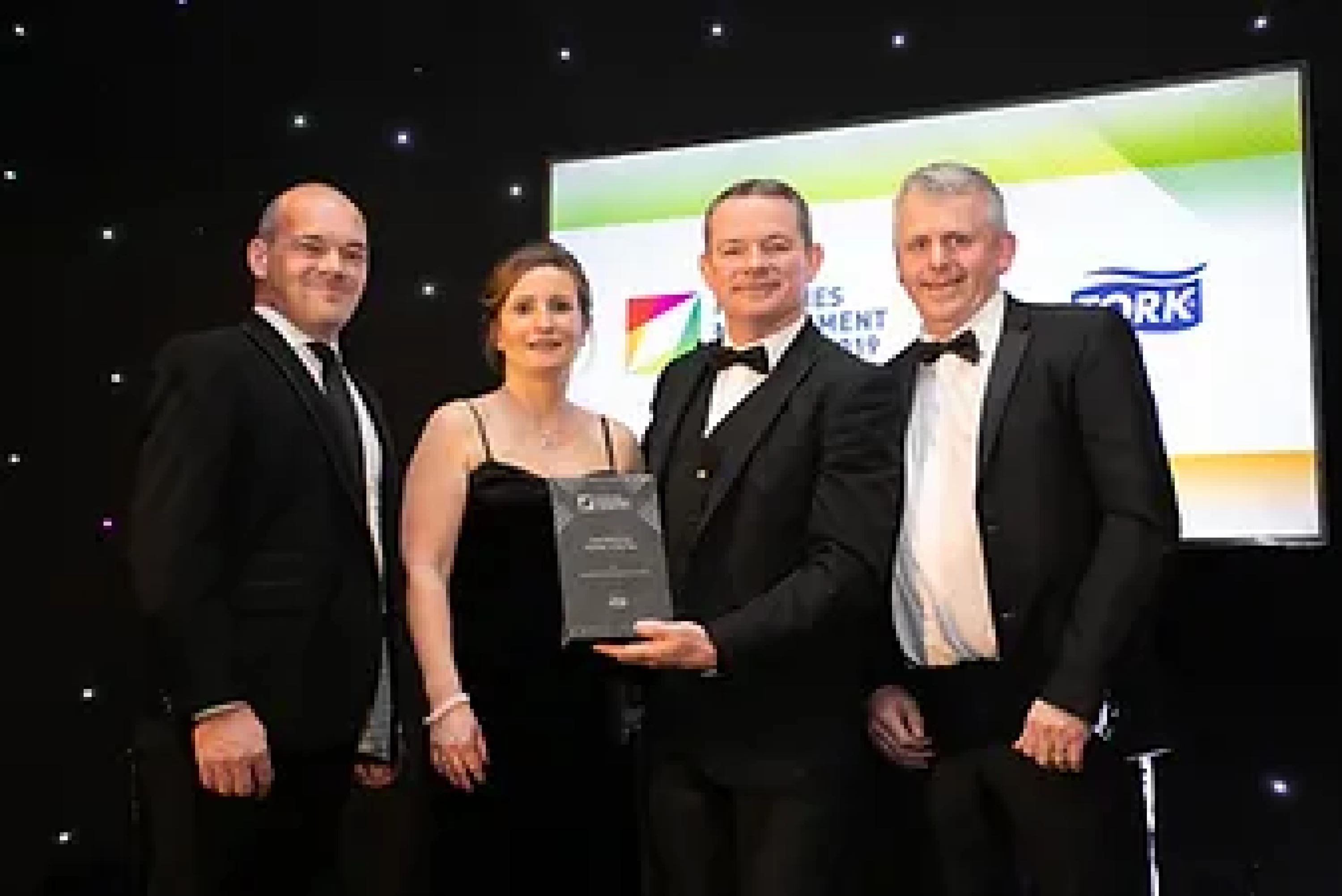 Liam Smith, Sales Director, Tork® an Essity brand, presents the Total FM Service Provider of the Year award to Aramark Workplace Solutions Team.