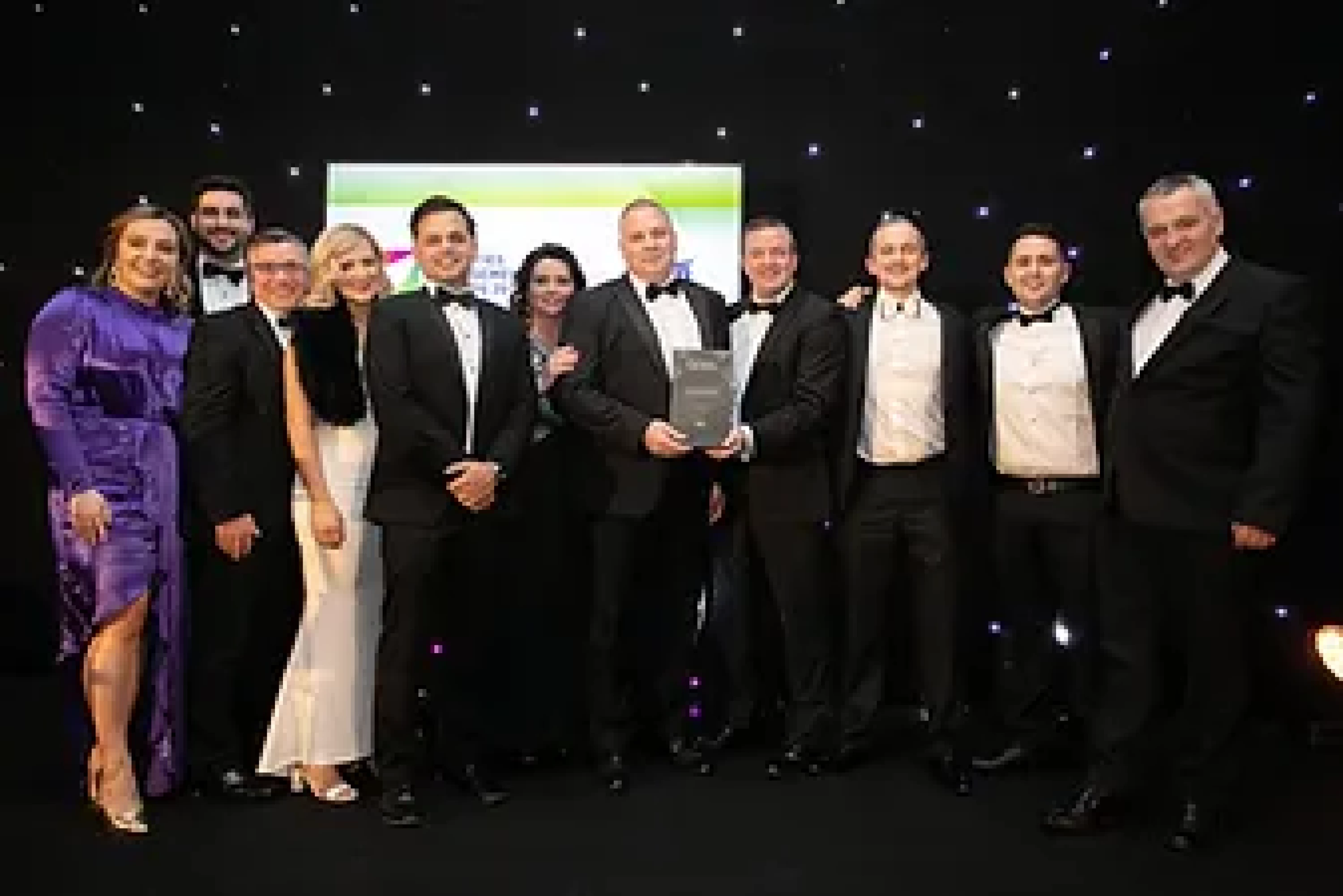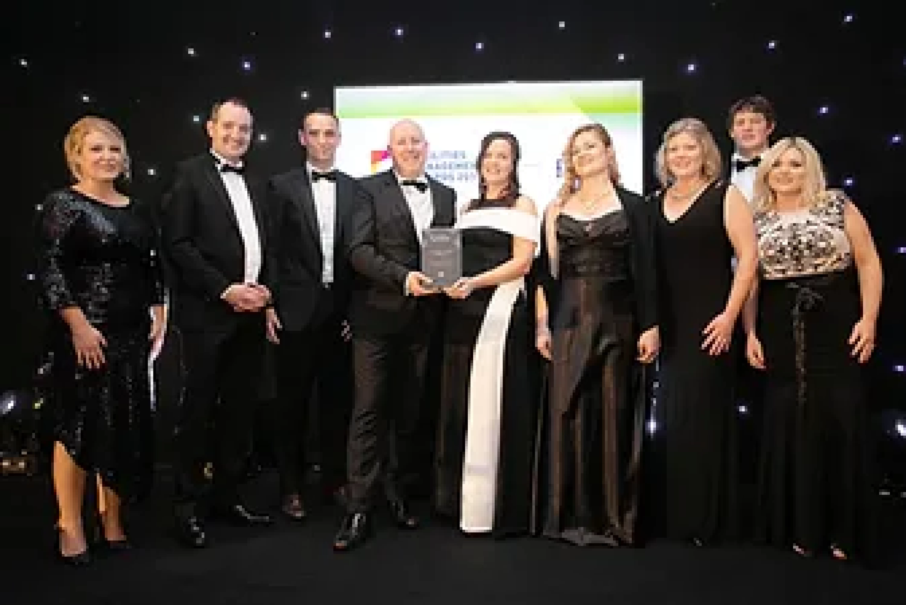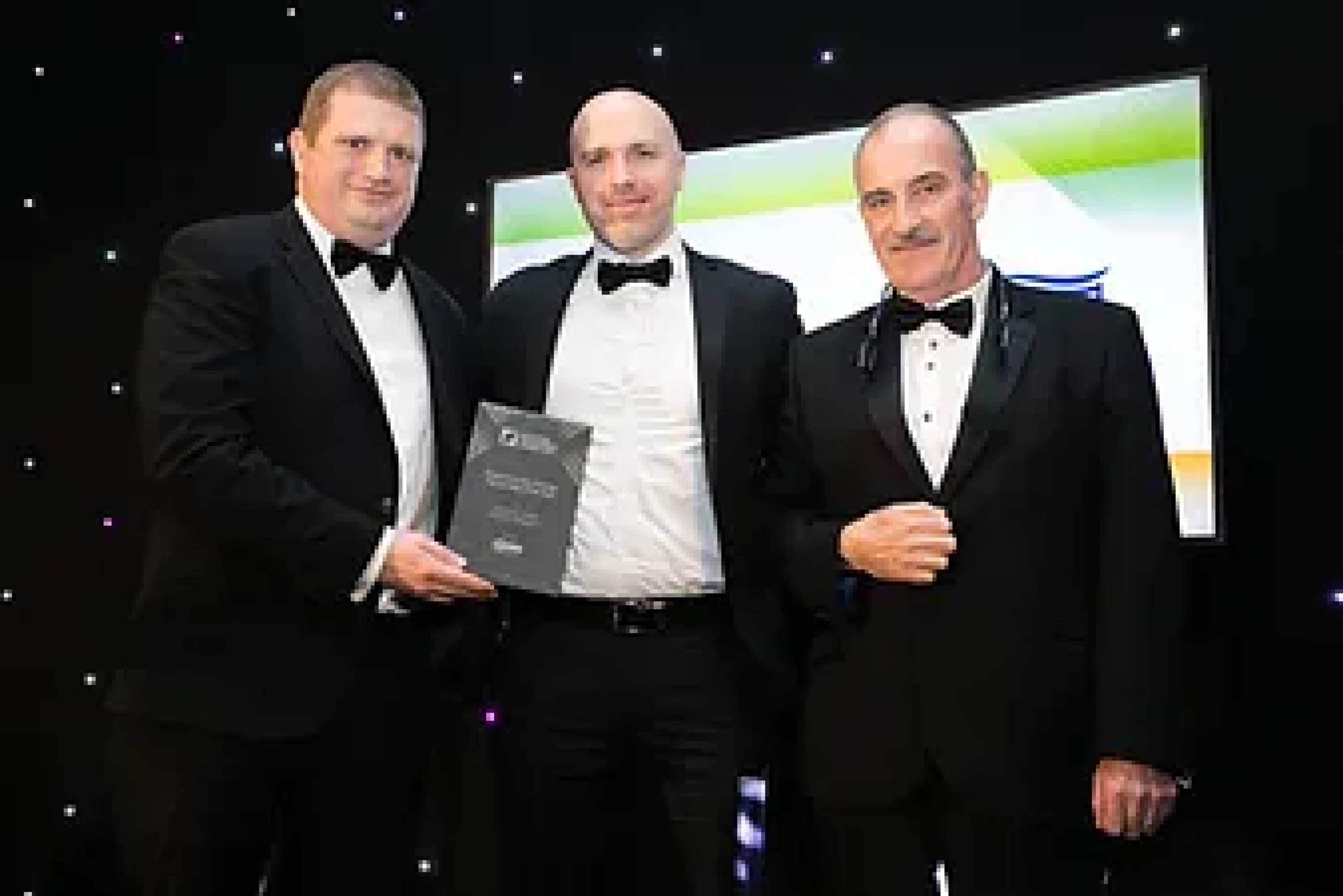 Derek O’Boyle, General Manager, MKF presents the Client & Service Provider Partnership of the Year award to Ian Hutchinson & Joe Gormley, Winters Property.